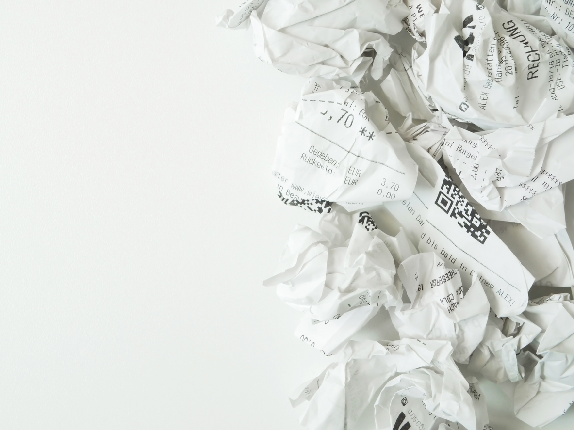 crumpled paper receipts - paper waste