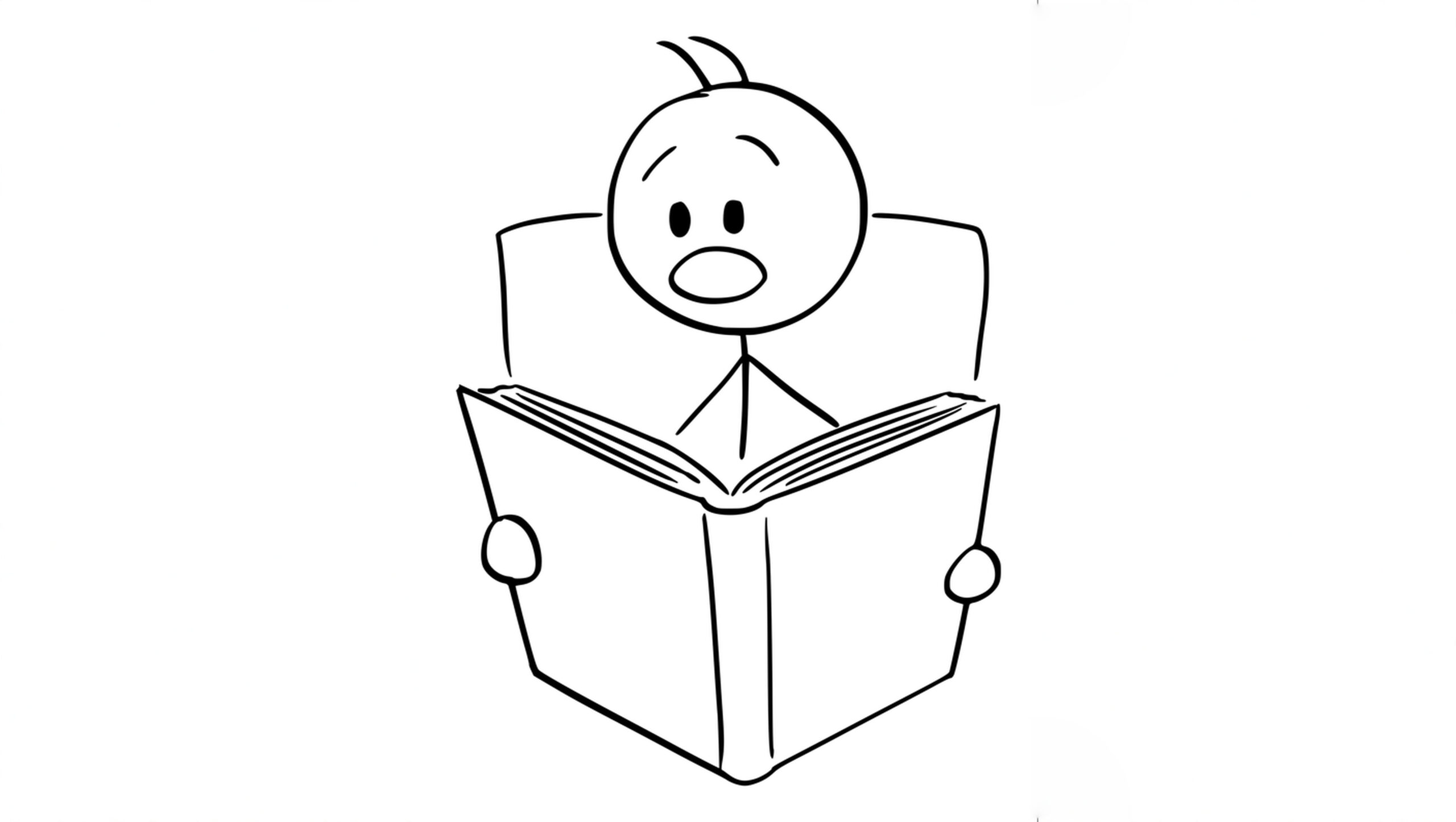 Vector cartoon stick figure drawing conceptual illustration of shocked or frightened man reading shocking or scary book.