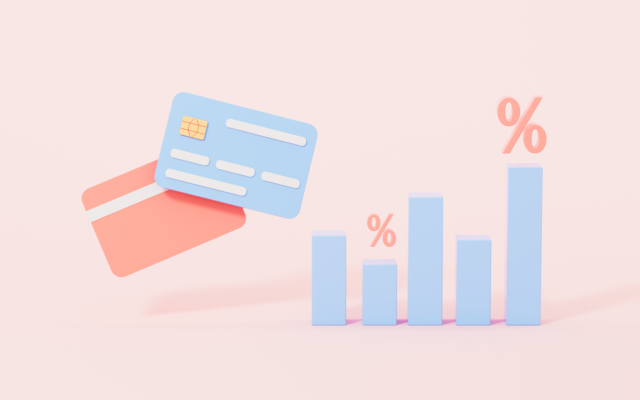 Bank cards and growth rate, 3d rendering.